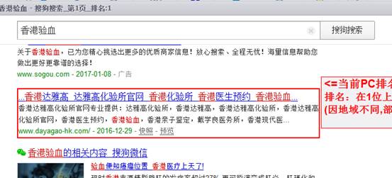 优化成果:经过紧张的40天优化工作,所有关键词搜狗pc端全部第一。