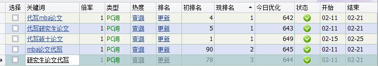 关键词排名情况: